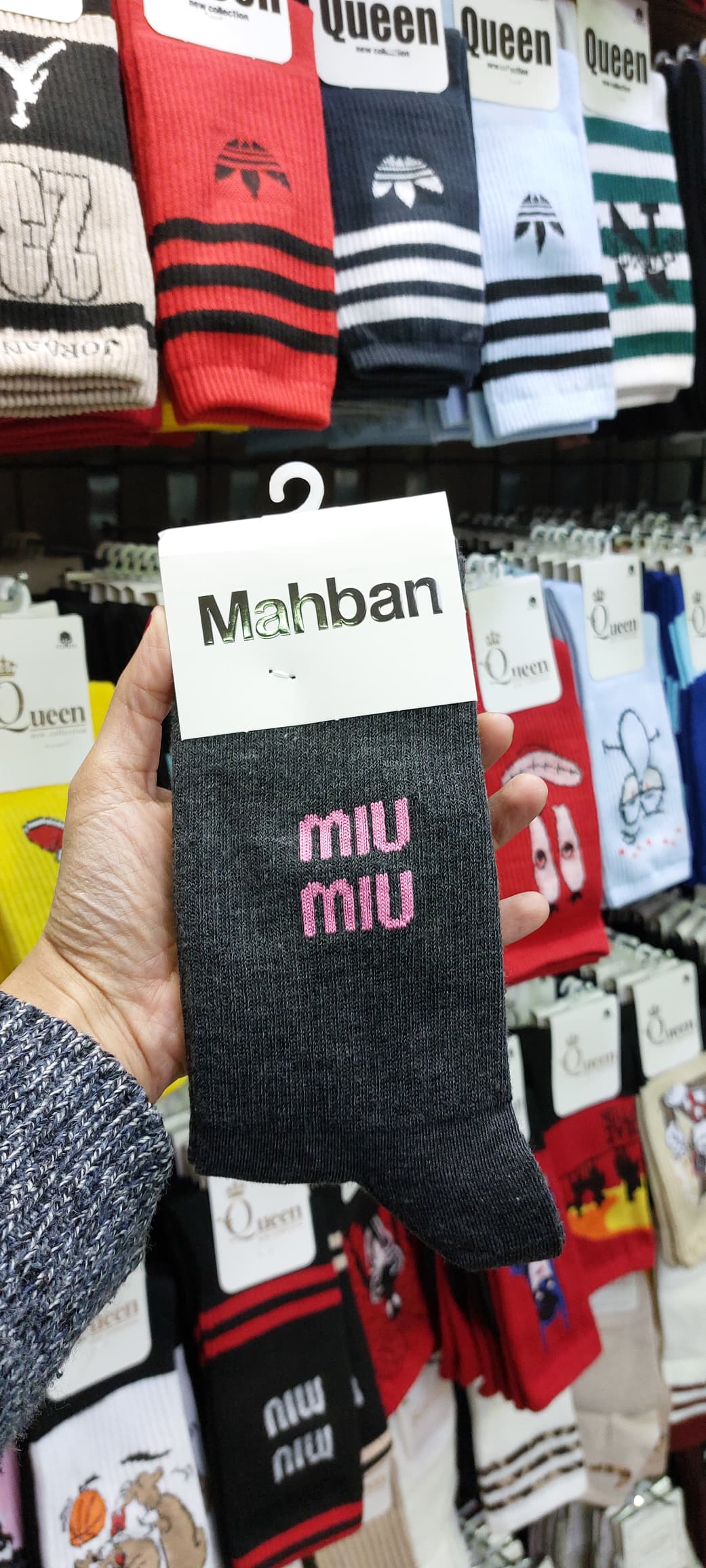 جوراب ساق بلند فانتزی اسپرت | طرح میو میو | miu miu | مناسب تمام فصول | سایز ۳۷ تا ۴۴ | طرح خاص و بافت باکیفیت